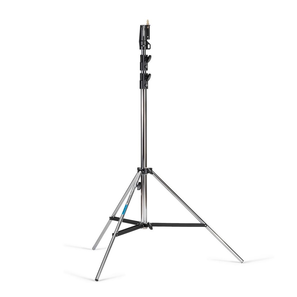 Verchromter luftgepolsterter Stahlständer mit Luftkissen. 3 Abschnitte, 2 Setzstufen. 1 Nivellierfuß.