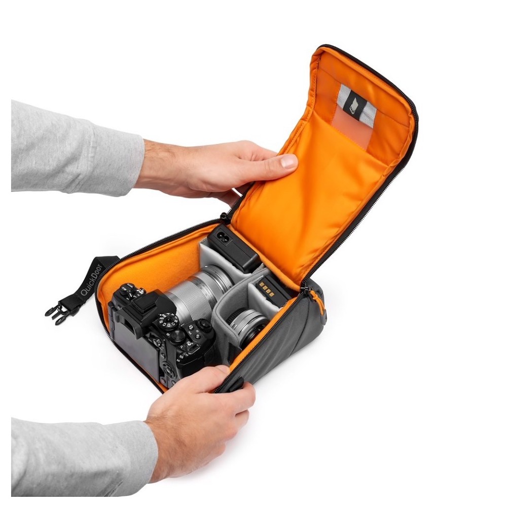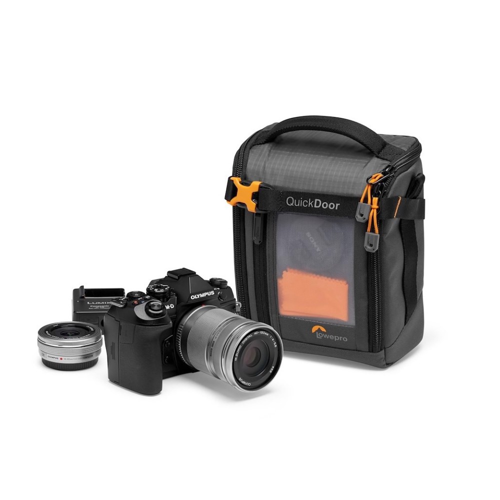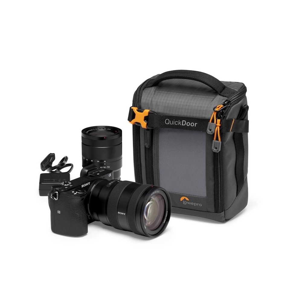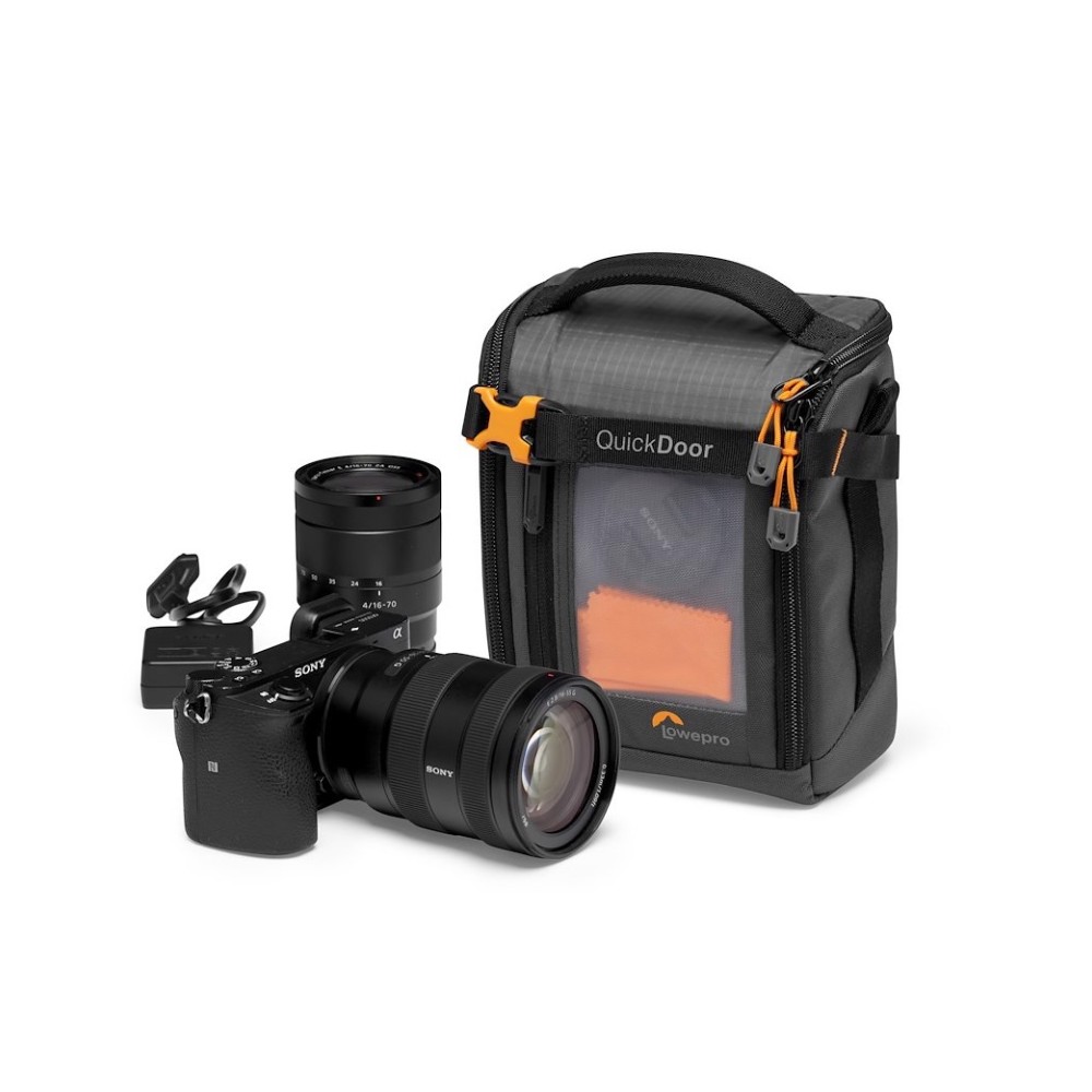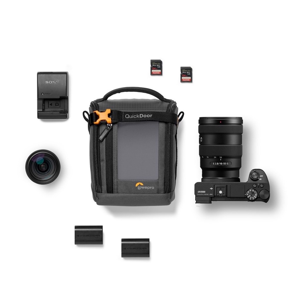 Die GearUp Creator Box Medium II Kameratasche ist die perfekte tragbare Lösung zum Schutz Ihrer spiegellosen Kameraausrüstung und Ihres Zubehörs. Die flexiblen Innenteiler können so eingestellt werden, dass spiegellose Vollformatkameras wie die Sony Alpha 6500 mit einem Standard-Zoomobjektiv und einem zusätzlichen Objektiv sicher verstaut werden können. In einer Innentasche können Speicherkarten untergebracht werden, und in der Außentasche finden Kabel, Objektivdeckel und Zubehör Platz. Das neue QuickDoor-Eingabesystem ermöglicht einen schnellen und einfachen Zugriff auf die Ausrüstung, während ein Verschlussriemen dafür sorgt, dass alles an seinem Platz bleibt. Sie haben die Wahl, den Organizer allein oder in einer größeren Tasche zu tragen!