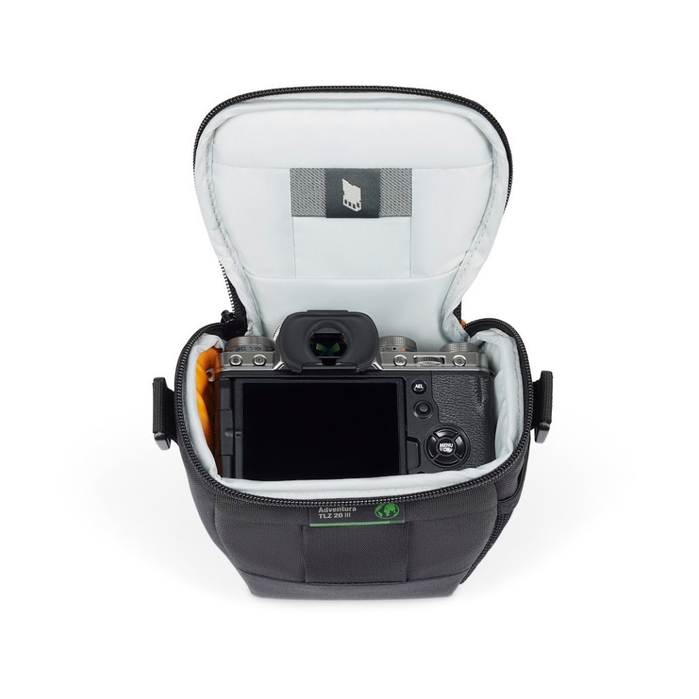 Die TLZ 20 bietet robusten Schutz für Kamera und Objektiv, kann in größeren Taschen verstaut oder über den abnehmbaren/verstellbaren Schultergurt mit rutschfestem Patch getragen werden. Die integrierte Gürtelschlaufe und der haltbare, PVC-freie, speziell geformte Boden schützen Ihre Ausrüstung vor Feuchtigkeit, Abrieb und Stößen.