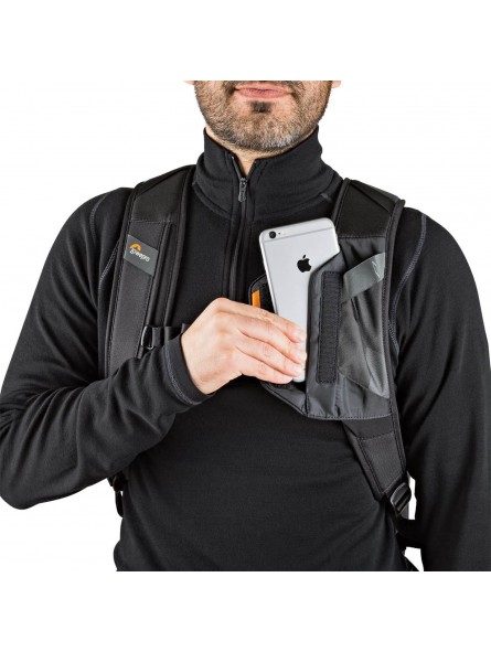 Der Rucksack bietet zudem ein Fach für persönliche Gegenstände, eine dedizierte Tasche für ein 15"-Laptop und 10"-Tablet sowie eine bequeme Telefonhülle am Schultergurt.