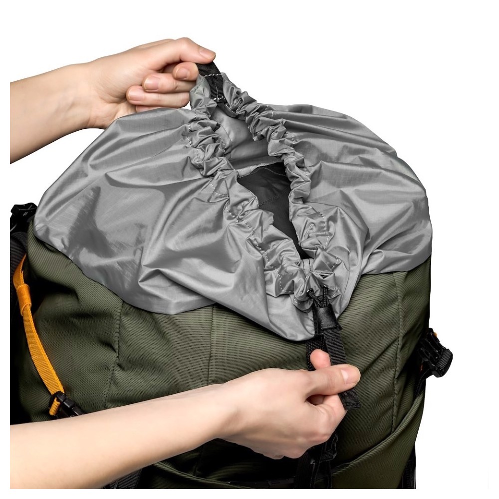 Der Rucksack ist robust und besteht zu 86 % aus recyceltem Material* mit 100 % recyceltem 420D Nylon Oxford und 420D Nylon Diamond Ripstop mit Karbonat-Außenseite und wird mit All Weather AW Cover™ geliefert, um die Ausrüstung vor Regen, Schnee und Staub zu schützen.