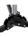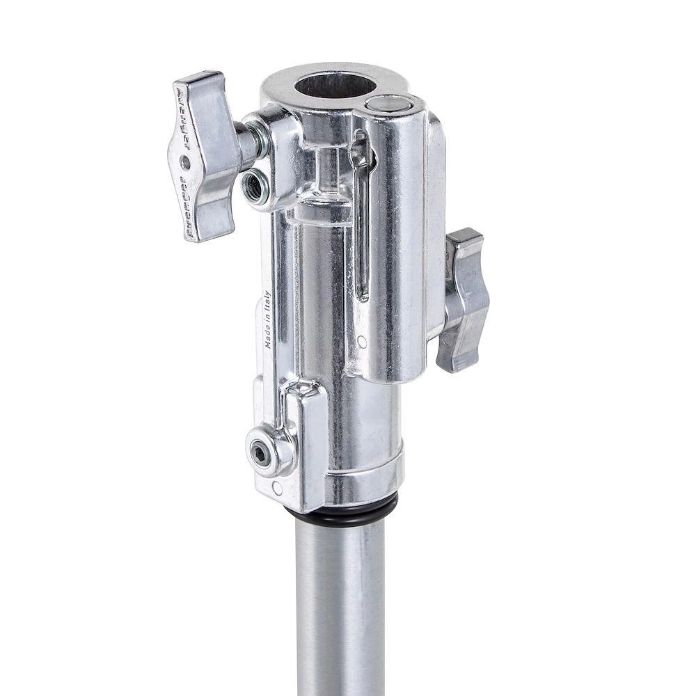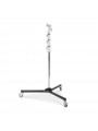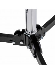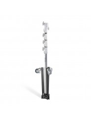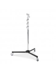 The Avenger A5034 folding base roller combo stand with 4 sections and 3 risers, features a lower steel column and 3 risers in Aluminium. This junior stand has a folding wheel base and when the stand is retracted and the wheels are folded it is only 132 cm/52 in long. Capable of holding loads up to 20 kg/44.1 lbs. this rolling braked base stand is great for holding lights, LED panels and grip accessories using the junior mount. The junior combo head has a 28 mm/ 1 1/8 in receiver and a retractable 16 mm/ 5/8 in baby pin. The low folding wheel base allows you to get this stand under objects that are not very far off the ground. Easily nestles under c-stands too! The max height of 340 cm/133.9 in easily positions many lights above and over your subjects. Recommended Accessories: G200-1, C1575B, E600, D800KIT, F831TH, E200, 163-10, 163-38, E390, F301, F300